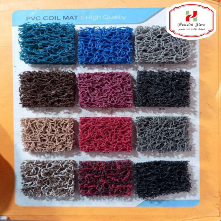عرض ۱ متر در رنگهای طوسی، مشکی، کرم شکلاتی، طوسی مشکی، قرمز، آبی و سبز و عرض ۱.۲ متر در رنگهای خاکستری و مشکی موجود است.